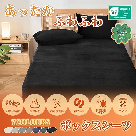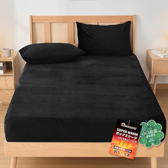 ボックスシーツ シングル 冬 ベッドシーツ フランネル 暖かい 厚手 極暖吸湿発熱 冬用 防寒対策 ベッドカバー【CICA保湿加工・防ダニ99.9%・エッコテックス認定】抗菌防臭加工 全周ゴム付き 静電気防止 丸洗いOK 着脱簡単 マットレスカバー あったかシーツ 敷ふとん兼用 マチ部分約30cm Housecover(シングル・100X200cm ブラック) a
