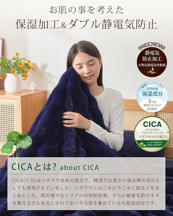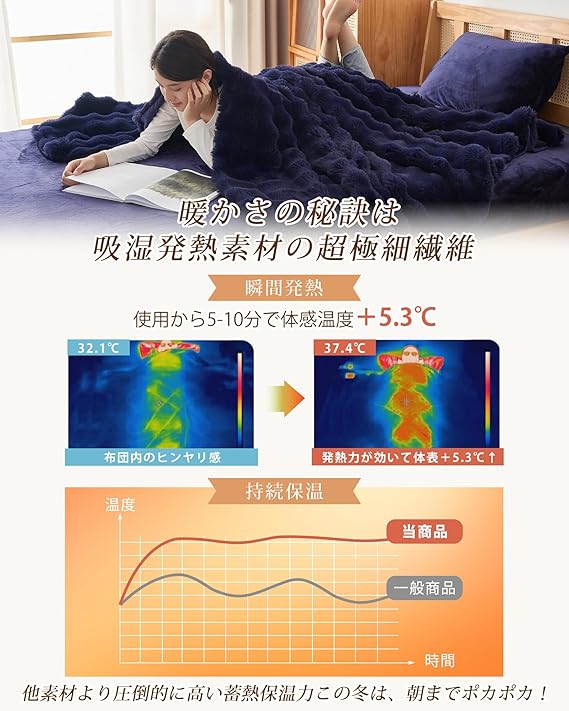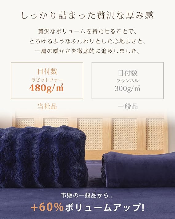 【プラス5℃蓄熱保温】480g/㎡高密度ラビットファー調生地とフランネルの組み合わせで、普通のフランネルカバーより、蓄熱保温効果が倍増!マイクロ