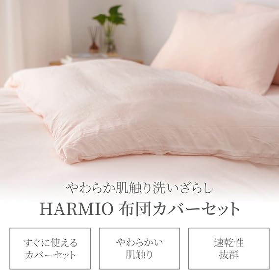 布団カバーセット 寝具カバーセット 洋式ベッド・和式布団兼用 掛け布団カバー ボックスシーツ 枕カバー 洗いざらし 水洗い加工 ピーチスキン加工 やわらかい肌触り 速乾 丸洗いOK オールシーズン (セミダブル・4点セット・ピンク) a