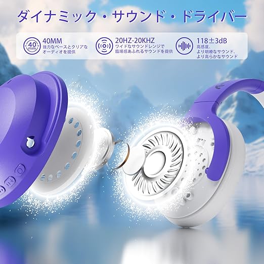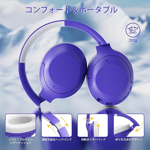 ATTACK SHARK G300 ヘッドホン bluetooth ワイヤレスヘッドホン コスパ最強 オーバーイヤーヘッドホン HIFIステレオ ハイブリッドアクティブノイズキャンセリング ANC 低遅延 有線 無線 3.5mm AUX有線両用 Bluetooth 5.3 密閉型 軽量 折り畳み可能 内蔵マイク付き 20時間連続再生 日本語説明書【技術基準適合証明219-249399】(パープル) a