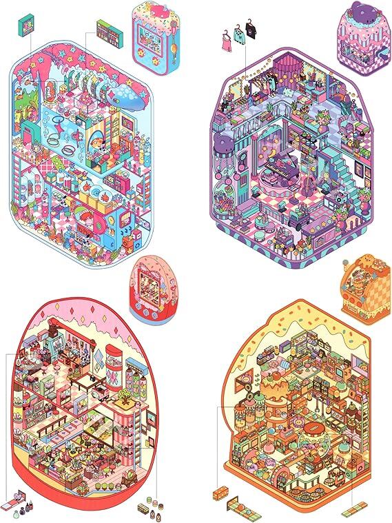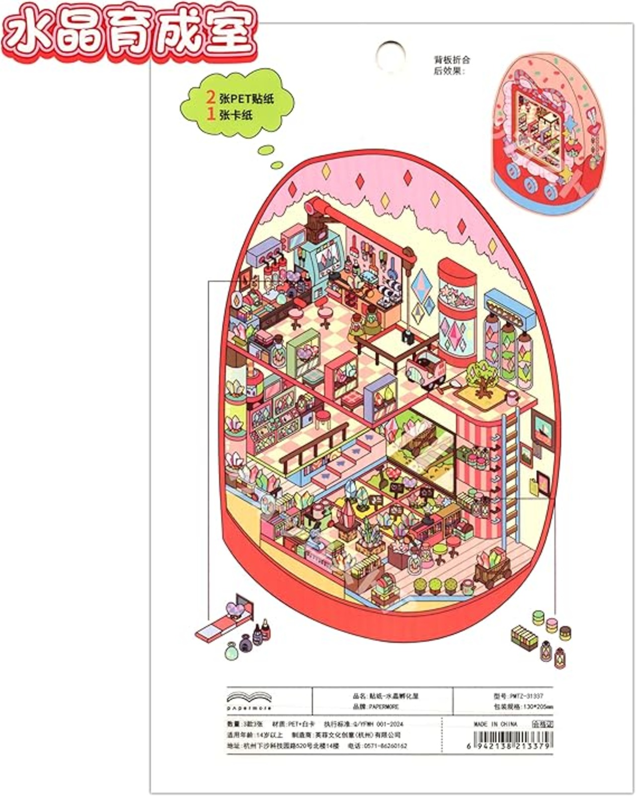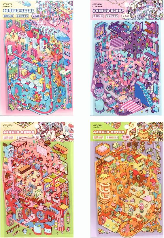 【3D 造景シール シーンシール】 ステッカー ハウスステッカー 手帳 可愛い 趣味 3D 立体 おもちゃ 紙素材 パズル ミニチュア (シュガーワールド) (E.シュガーワールド(4枚セット)) a