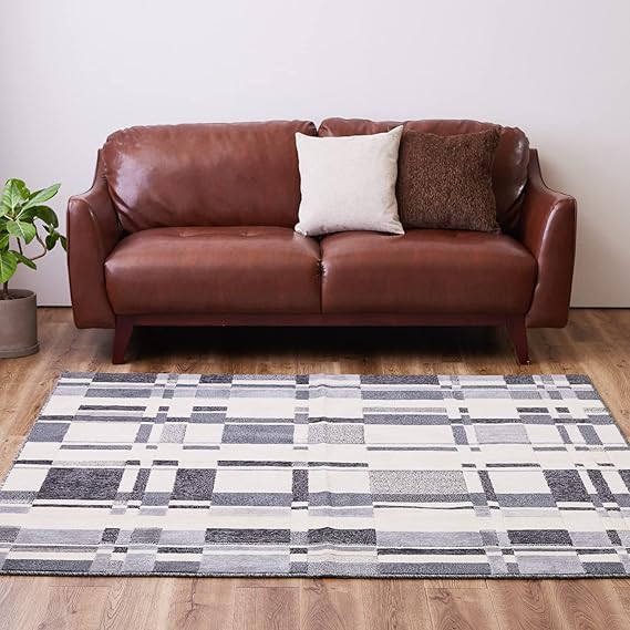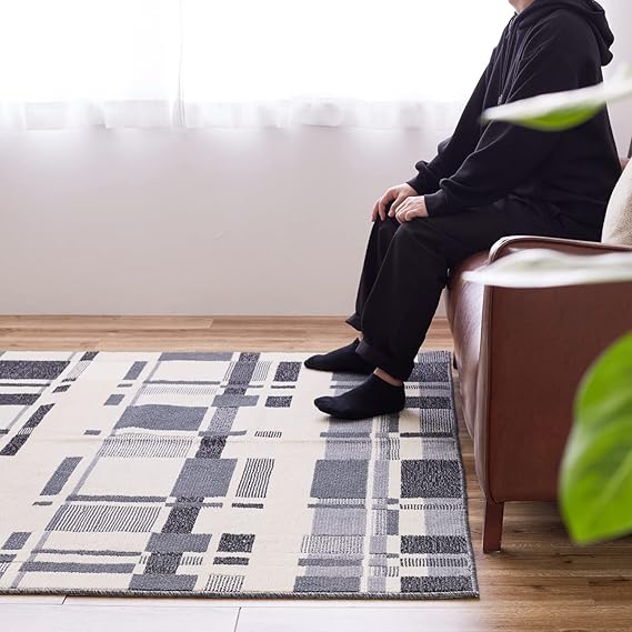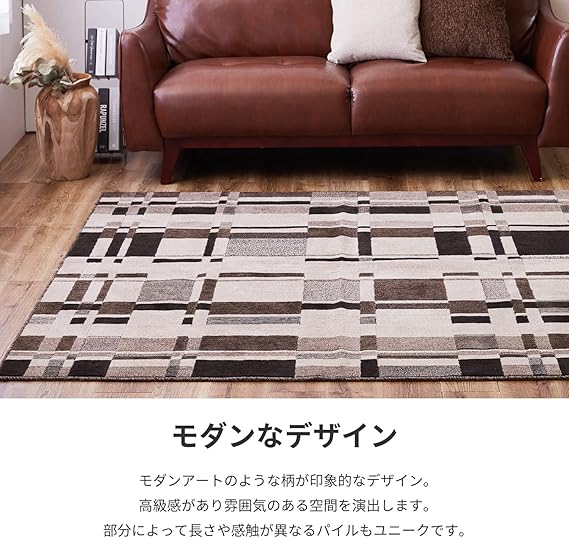 モダンな柄の高機能国産ラグ。暮らしにうれしい抗菌、防臭、防ダニ機能、さらに 防炎性試験に合格した燃えにくさも兼ね備えています。モダンアートのような柄で、雰囲気のある空間を演出します。
