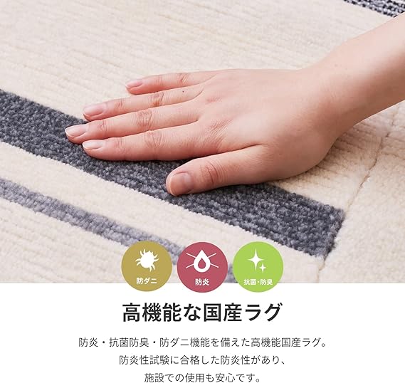 【備考】 防炎。防ダニ。抗菌・防臭。ホットカーペット・床暖房対応。