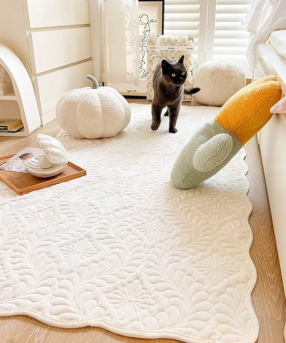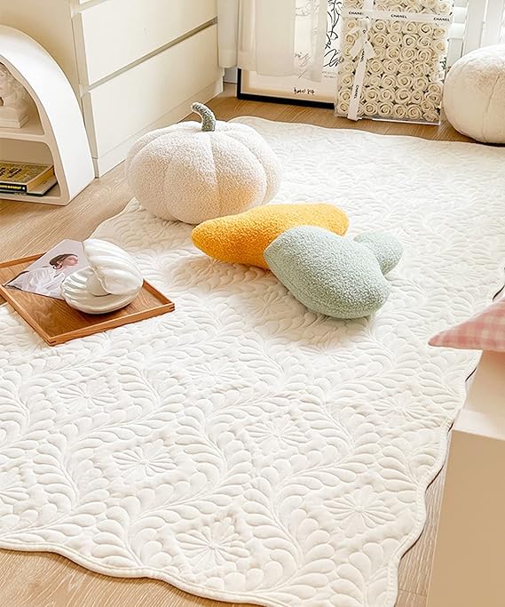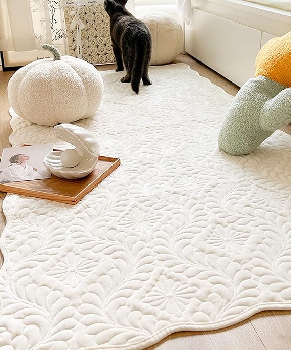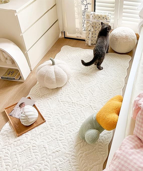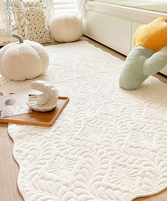 ラグ おしゃれ カーペット 可愛い かわいい 韓国 インテリア ポタニカル キルティング 室内マット 玄関 モダン 90×180cm SNS映え 韓国雑貨 キルティングのナチュラル可愛いラグ (ホワイト) a
