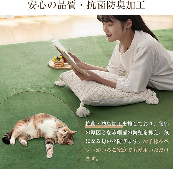 【滑り止め・抗菌防臭】ラグの裏面には複数の滑り止めドットを施し、床にしっかりフィット。優れた滑りにくさでズレを防止します。 さらに、お子様やペット