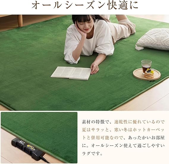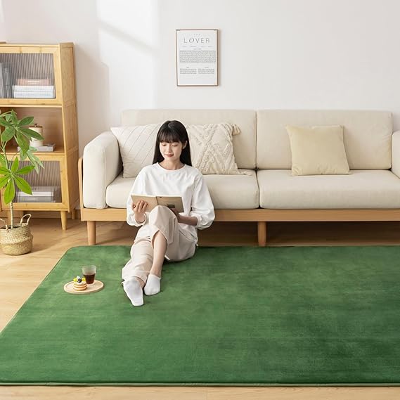 Softime カーペット ラグ 低反発 ラグマット 厚手 15mm 絨毯 防音 185×185cm 約2畳 滑り止め付 防ダニ 抗菌 防臭 地毯 オールシーズン快適 床暖房 ホットカーペット対応 じゅうたん リビングマット 無地・グリーン c