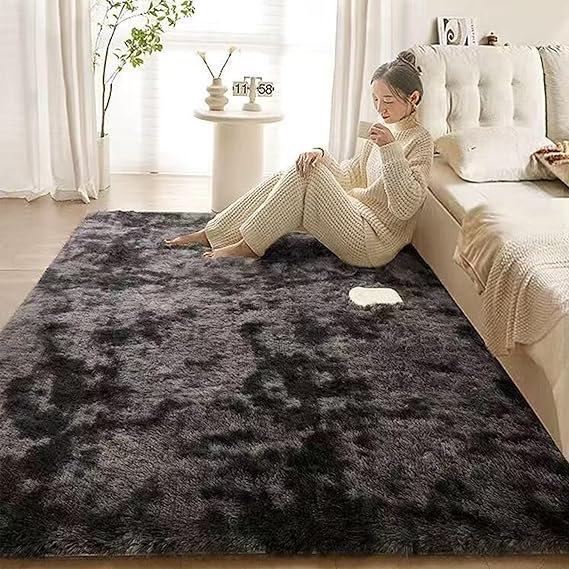 ラグマット カーペット ラグ 洗える シャギーラグ HOSUR 120x160cm 滑り止め付き 長方形 北欧 絨毯 低反発 ふわふわ 厚手 洗えるラグ オールシーズン(スモーキーグレー) a