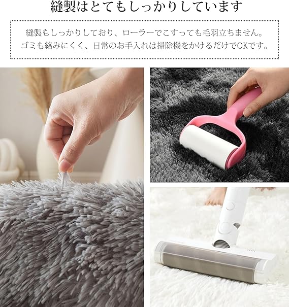 【裏面は滑り止め加工】こちらのラグには滑り止め加工を施しているので、ズレることもありません。お子様やペットが走り回っても、ご家庭で安心してお使いいただけます。また、裏面は不織布で床を傷つけません。