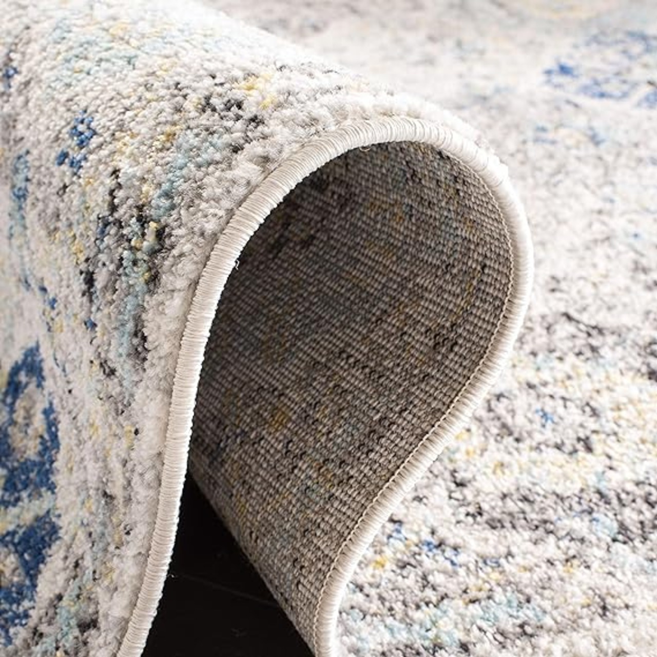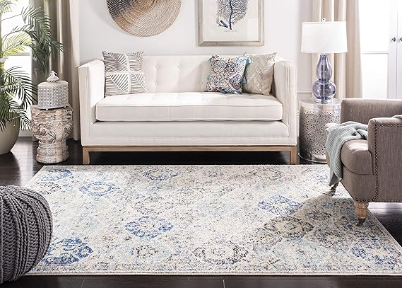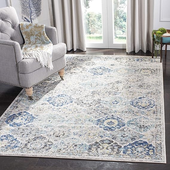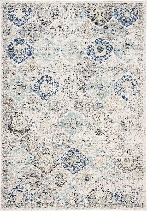 SAFAVIEH (サファビア) ニューヨーク発 Madison Collection (マディソンコレクション) エリアラグ アイボリー/アクア 160×229cm Boho (ボーホー) シックスタイル フローラルメダリオン 格子 ディストレスド加工 毛が抜けないタイプ リビング/ベッドルーム 【日本正規輸入品】 MAD611A a