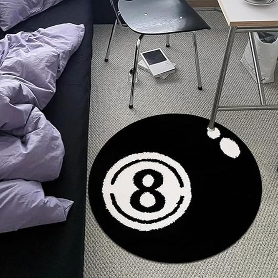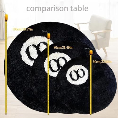 ビリヤードマット 8ボール ブラック ,装飾ラグ円形 ,TPR滑り止め裏面 洗える 玄関 カーペット,選べる3サイズ (60cm/80cm/100cm) (80cm) a
