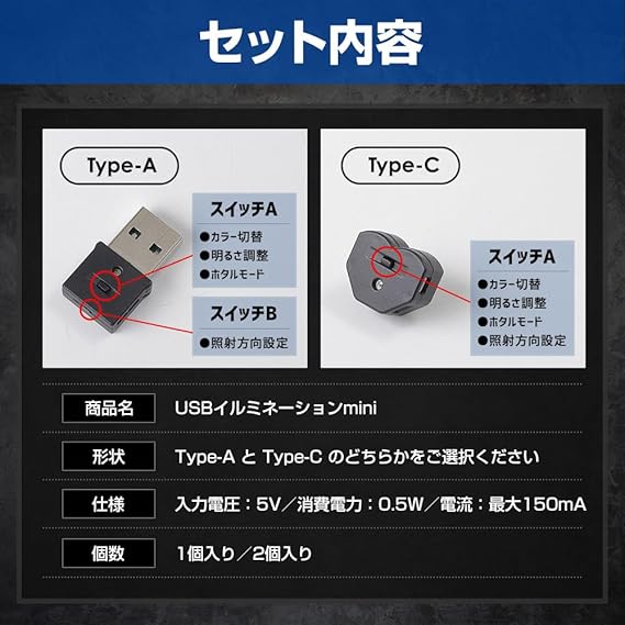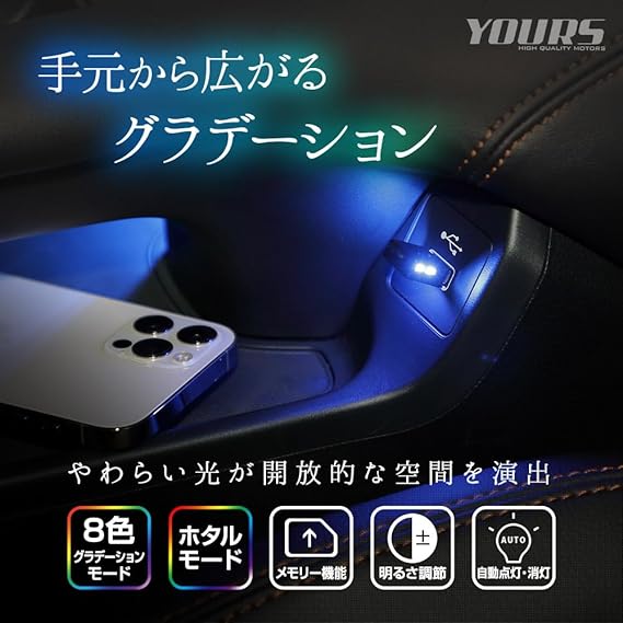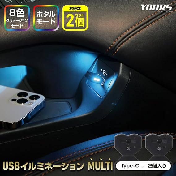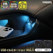 YOURS(ユアーズ) USBイルミネーション MULTI [type-C][2個] LED ライト LEDイルミ 車 車内 間接照明 照明 ランプ 手元 足元 フットランプ USBポート グラデーション マルチカラー ルームランプ 車用 コンソールボックス y509-022 [2] M a