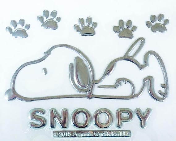 サイズ:102×124mm 【キャラクター/グッズ/車内用品/カー用品/ステッカー/シール/デコレーション】スヌーピーからステッカーが登場☆シックなシルバーステッカー!車やパソコンなどに貼ってかっこよく決めちゃおう♪