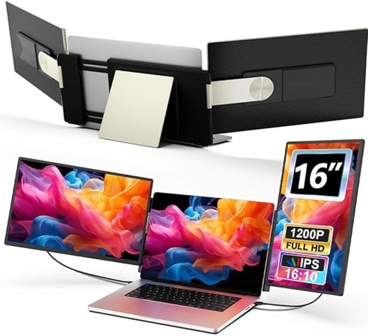 16インチモバイルモニターデュアルディスプレイ 、更新された1200 P FHDポータブルディスプレイ、16:10アスペクト比スクリーン、回転可能で取り外し可能な画面、軽量 ノートパソコン用 旅行カバン付き USB-C/HDMIポート付き Windows/Macに適用(S7) a