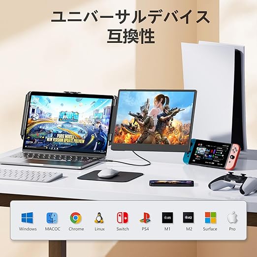 【生産性を大幅アップ】最先端のデュアルモニターエクステンダーが、パフォーマンスと携帯性を両立。マルチタスクの幅を広げ、リモートワークやゲーミング、コンテンツ制作など、あらゆる作業を効率的にこなせます。最大200%の作業効率向上を実感できる革新的なモバイルモニターです
