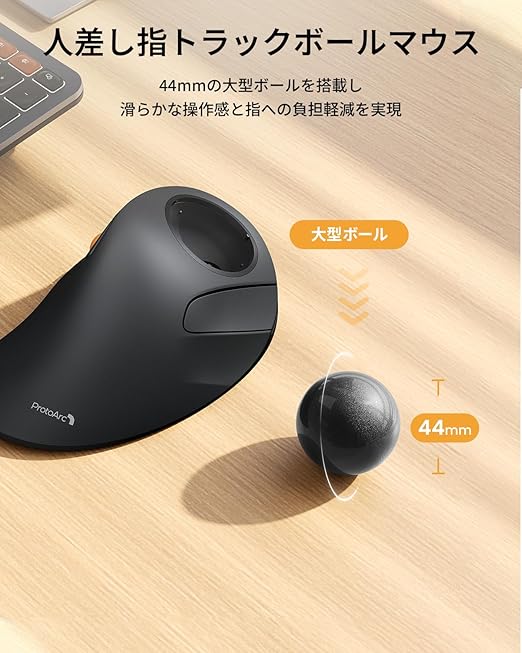 手首の痛みに悩んでいる方への福音国内のXやYoutubeなどで多くの方に大評判された「進化版」のEM03 NLはようやく着弾~EM01 NLやEM04は小型なボールマウスと違い、44mmの大型ボールを搭載したProtoArc EM03 NLは手が大きい方に向いています。大玉のボールを転がしやすくて、人差し指も中指も両方操作可能で、指の負担をけいげんできます。マウスを長い時間使用すると、腱鞘えんなどに困っている方やまた親指タイプに慣れない方や親指マウスになれない方は、ぜひEM03 NLをどうぞ。質
