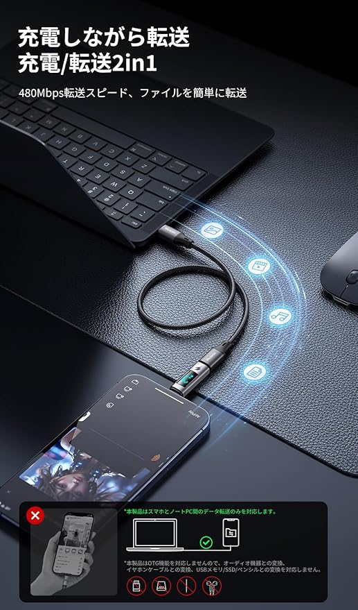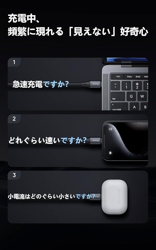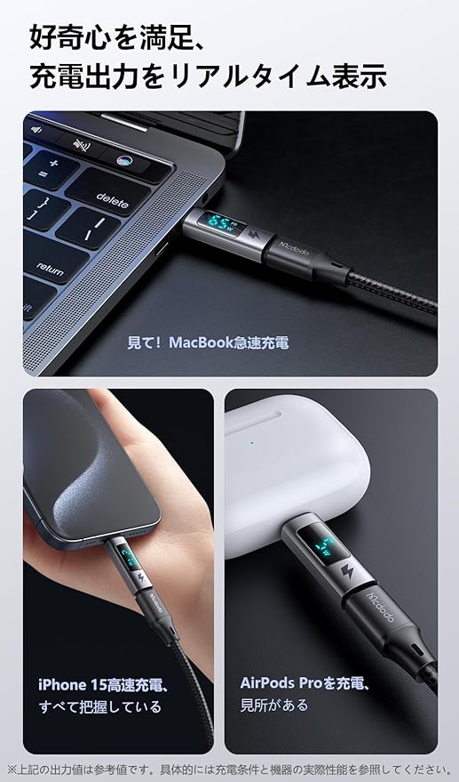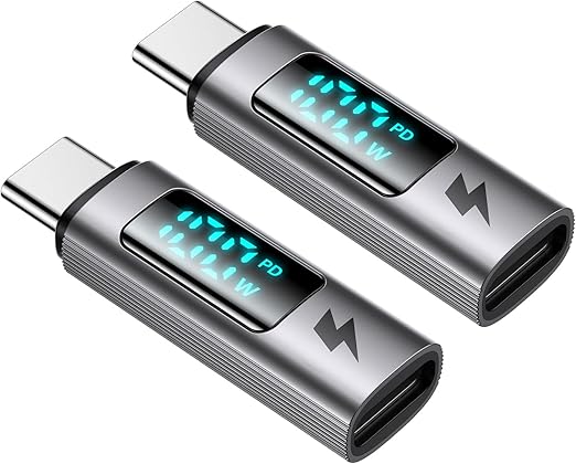 【USB-C to USB-C 変換アダプタ・出力スクリーン表示】:出力キャッチャー。差し込むだけで出力が分かる。出力スクリーン表示 Type-C to Type-C 充電変換アダプタです。充電出力、リアルタイムに表示。100W高出力、PD 急速充電を対応します。高速データ転送対応、充電しながらデータ転送可能。アルミ合金素材を採用しており、繊細な質感を備えています。普通のUSB-Cケーブル、瞬間でUSB-C出力デジタルディスプレイケーブルに切り替えます。