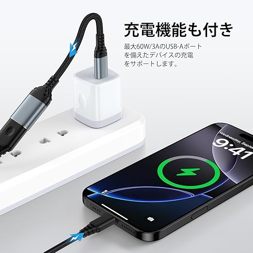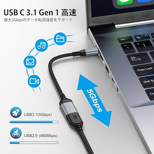 ★ USB 3.1 Gen1高速データ転送・60W急速充電:USB2.0より10倍の、最大5Gbps伝送スピードまで実現されています。 HD映画や動画、音楽などを数秒で高速転送することができます。下位互換性があるため、USB3.0とUSB2.0機器にも対応できるし、USB-C(オス) to USB-A 3.1(メス) 変換ケーブルは最大60W/3AのUSB-Aポートを備えたデバイスの充電もサポートします。