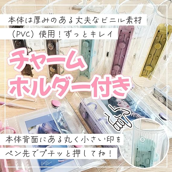【さらに可愛く♪】クリアバインダー本体の上部にはチャームホルダー付き。推しのチャームを付けてもさらに可愛くオリ