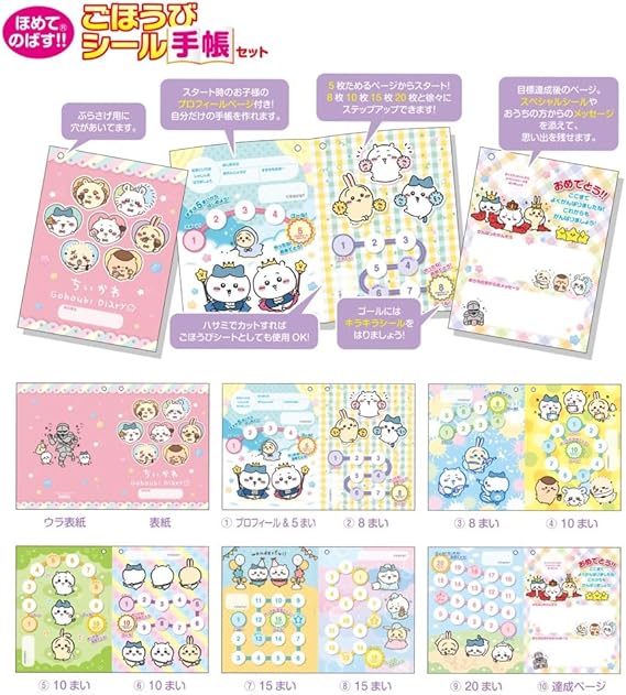 「ちいかわ」のシールを全て貼れる「ごほうび手帳」とキラキラホログラムシールの付いたシール手帳セット