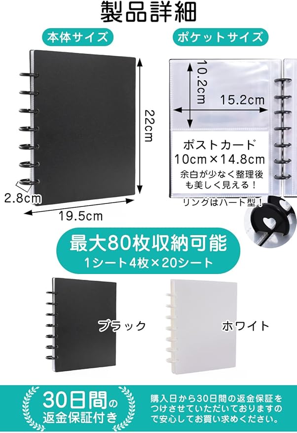 [SELECTsk] ポストカードホルダー ポストカード ファイル 【最大80枚収納可(15.2×10.2cm)/横入れタイプ】[見やすくて擦れにくい透明シートx推し活やイベントのカード整理にぴったり] (ホワイト) a