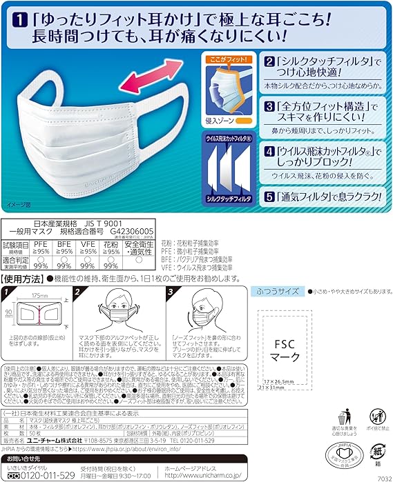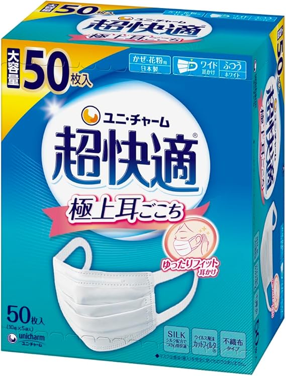 超快適マスク 【大容量】 風邪・花粉用 プリーツタイプ 不織布マスク 日本製 ふつうサイズ 50枚入 〔PM2.5対応 ノーズフィットつき〕(ウイルス飛沫カットフィルタ)〔JIS規格適合審査済み〕〔全国マスク工業会 会員マーク表示〕ユニチャーム a