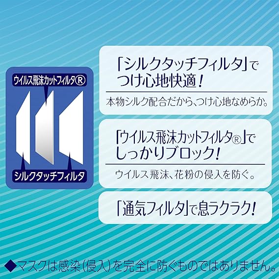 肌触りがよい本物シルク配合の「シルクタッチフィルタ」でつけ心地快適。