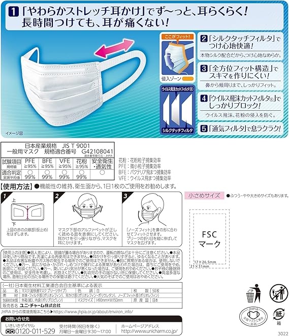 超快適マスク 風邪・花粉用 プリーツタイプ 不織布マスク 日本製 小さめサイズ 50枚入 〔PM2.5対応 日本製 ノーズフィットつき〕 (99% ウィルス飛沫カットフィルタ) ユニチャーム a
