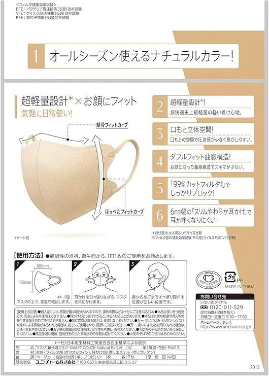 【まとめ買い3袋セット】超快適マスク スマートカラー(SMART COLOR)ナチュラルベージュ ふつう 7枚