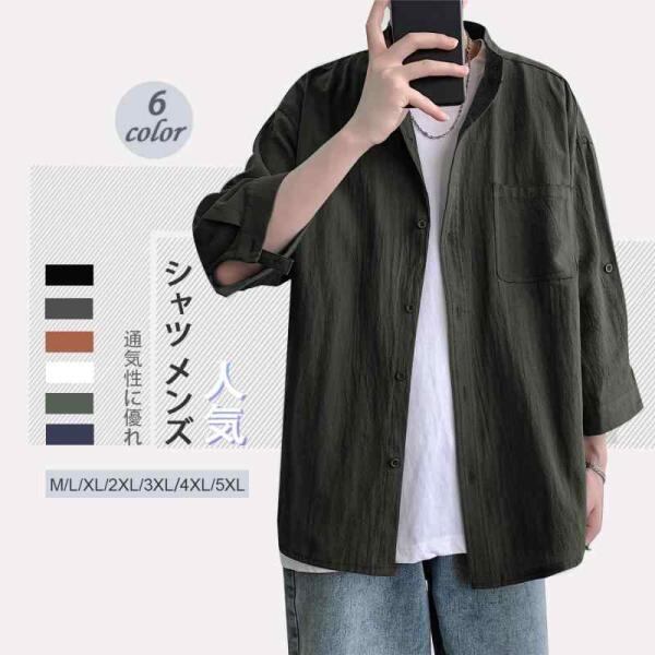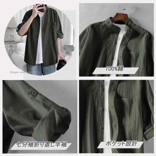 [FLYSHION] シャツ メンズ 長袖 七分袖 折り返し 半袖 夏服 ファッション ボタンアップ シャツ 大きいサイズ メンズ 無地 柔らかい ワ