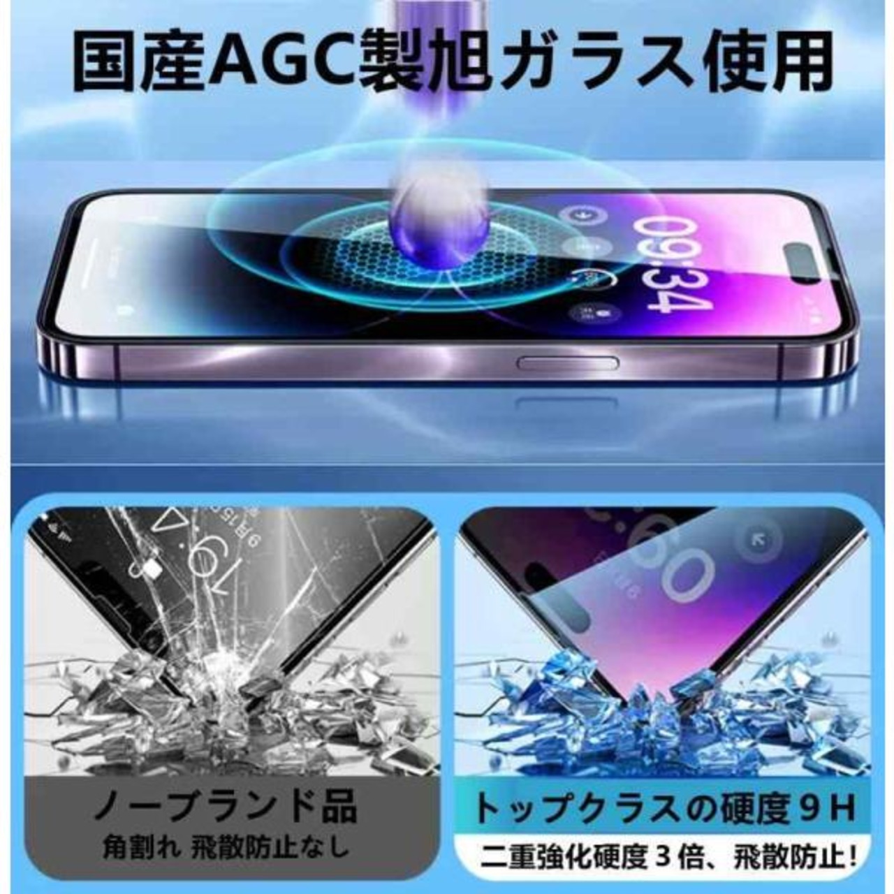 【国産AGC社旭硝子素材】日本AGC社製の旭硝子を採用し、丈夫な素材と剛性の高い構造で、長く安心して使えます。特殊な飛散防止設計により、万一割れてしまった際にもガ片が飛散することなく、高い安全性を実現しています。