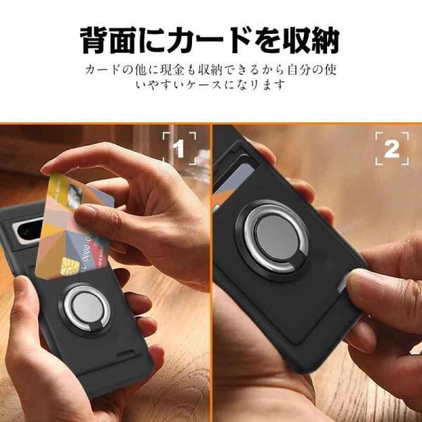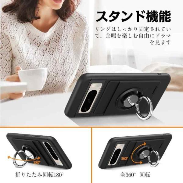 Google Piel 8 Pro ケース リング付き シリコン 背面 カード収納 ピクセル8Pro ケース スタンド機能 360°回転リング 耐衝撃