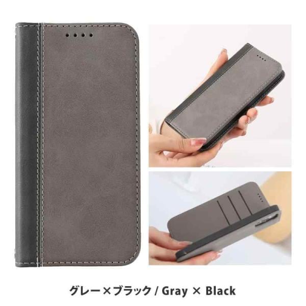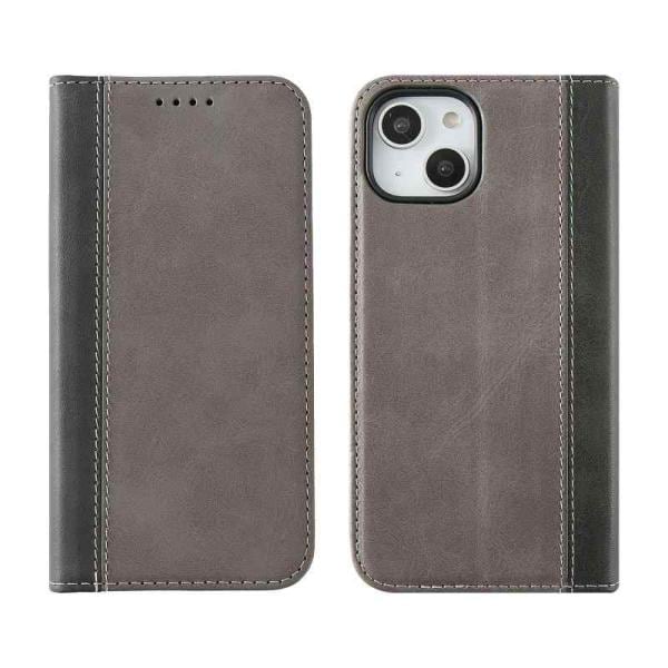 HanaRo iPhone14 グレー×ブラック PUレザー 手帳型ケース ベルトなし マグネット アイフォン ケース カバー iPhone14ケ