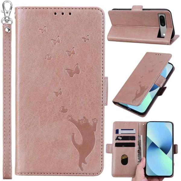 Kitzomi Piel 7A ケース 手帳型 ピクセル7a ケース 手帳型 google piel 7a 手帳型ケース グーグルピクセル7a ケース 蝶と猫の3Dパターン スタンド キャッシュポーチ リストストラップ プレム耐久