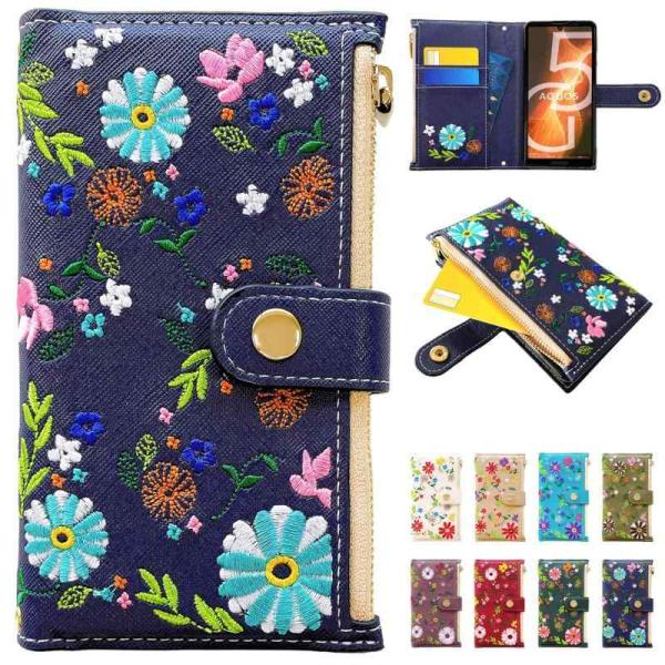 OPPO Reno5 A ケース 手帳型 カバー 手帳型ケース Reno5A Reno5Aケース Reno5Aカバー OPPOReno5A OPPOReno5Aケース OPPOReno5Aカバー スマホケース スマホカバー おしゃれ花刺繍 ネイビー