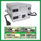AC100V(日本国内)で550WまでのAC220〜240V仕様の家電製品が使えます。
