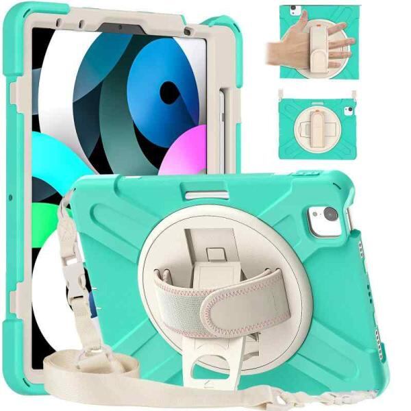 カラフル iPad Pro 11 ケース 2022/ 2021 /2020/ 2018 斜め掛け 360°回転 iPad Air4 2020/ Air5 2022 ケース iPad Air 第4/5世代 10.9インチケース スタンド ショルダーストラップ ハンドベルト ペンホルダー 頑丈