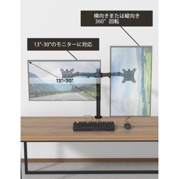 【2画面モニター対応】本ダブルモニターアームは2つのスクンに対応し、デスクスペースを効果的に解放できます。耐荷重は各アーム10KGで、VESA規格は7575mm/100100mmで、13−32インチpcモニターに幅広く対応します。ビジネスでの利用はもちろん、トレーダーやゲーマーの方にもおすすめです。