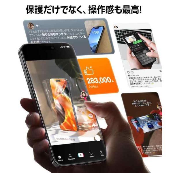 「米軍規格・宇宙航空材料」TORRAS iPhone15Pro 専用 ガラスフィルム 全面保護 強化極細黒縁 9H越え 貼り付け簡単 さらさら 気泡レ1