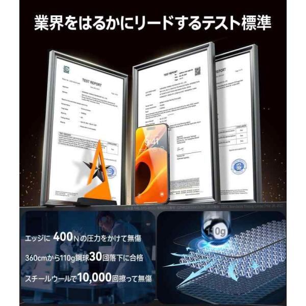 【米軍規格超え・衝撃から守れ】組み込まれたNa+/K+イオン交換、SCL緩衝層などの30つ以上の革命的な加工技術で、表面に圧縮応力層を発生させ、耐衝撃性が普通製品より20倍も高いです。更に、伝わる衝撃力を瞬時に分散させ、アイフォン15Proの液晶画面に正面からの衝撃による割れを徹底的に防ぐ、本当にスクリーン保護と絶対