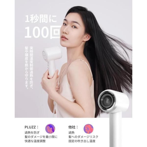 【風速がパワーアップ】 PLUZZ ドライヤー 速乾 74m/s大風量 2.7億高濃度スイオン 美髪 ヘアドライヤー 軽量コンパクト サロン級 温冷リ1