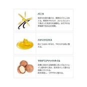 成分:塩化Na、香料、バニラ果実エキス、ハチミツエキス、マカデナッツ油、ヒマワリ種子油、クエン酸水添パーム油脂肪酸グリセリズ、ポリソルベート20、黄4、赤102、トコフェロール