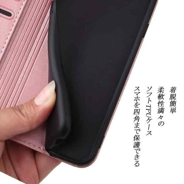 ?【素材改良】本商品の外部カバーは牛革繊維を人工合成という生産プロセスで仕上げられた合革で、普通の合革より、性能上の 耐熱性、耐摩擦が一層アップされた。表面生地が硬すぎず、やわすぎず、ちょっと良い手触りです。手汗が出てきても滑りにくく、ケースにも変な匂いがございません。インなケースは弾力性のあるソフト素材を採用しており、四角までしっかり保護でき、実用性高い手帳型です。