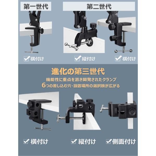 独創的なクランプ。縦・横・側面の方向に付替える