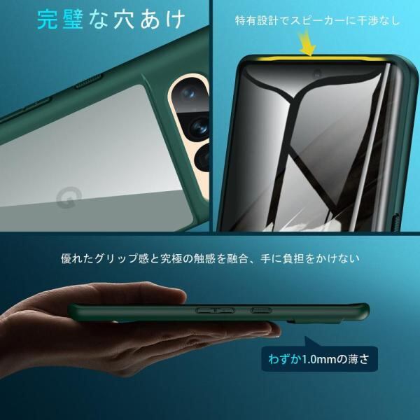 Google Pixel7 Pro 用 ケース クリア 耐衝撃 米軍MIL規格取得 SGS認証 黄ばみなし レンズ保護 滑り止め 指紋防止 薄型 軽量 ストラップホール付き ピクセル7 Pro 用カバー グリーン Crystal Series