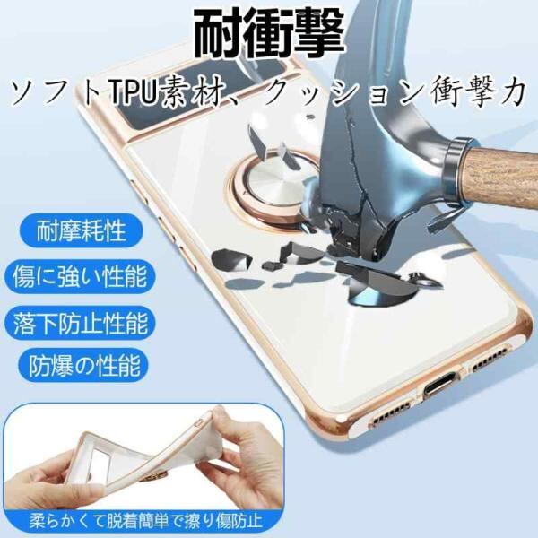 Google Pixel7A ケース リング付き グーグル ピクセル 7A リング カバー 耐衝撃 TPU メッキ加工 360°回転 スタンド機能 車3