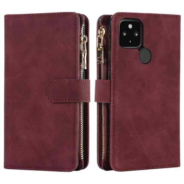 Eastwave Google Pixel 4A 5G ケース google pixel4a 5g 縄掛けケース 手帳型 財布型 ICカード コインポケット ストラップ付き カード 収納 小銭入れ ファスナーポケット付き PUレザー 6色レッド