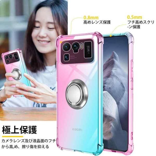 Xiaomi Mi 11 Ultra ケース リング クリア TPU シリコン リング付き薄型 軽量シリコン 耐衝撃 指紋防止 360回転 車載ホルダ1