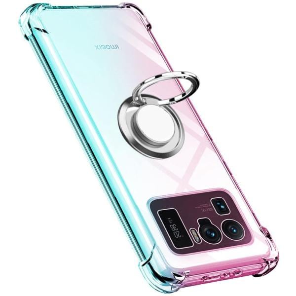 Xiaomi Mi 11 Ultra ケース リング クリア TPU シリコン リング付き薄型 軽量シリコン 耐衝撃 指紋防止 360回転 車載ホルダー 一体型 人気 携帯カバー スマホケースMi 11 Ultra 専用 (ピンクグリーン)
