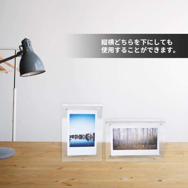?【多様な使用用途】家族写真など記念写真はもちろん、ネットプリントしたイラストやカレンダー、押し花など様々なものを展示できます。また、両面透明で縦・横置き兼用なので、様々なコーディネートが可能です。