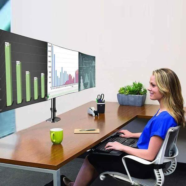 【三画面モニターアーム 】3台モニターを同時に設置し、気楽で自分のディスプレイ画面を他人にシェアして、画面の眩しさを減少し、作業効率がアップします。さらに、ディスプレイを横並びに3つ並べることで、レースゲームやFPSなどに最適な環境を作り出すことができます。水平稼動モデルなので、ディスプレイをきれいに横並びにするのも簡単です。